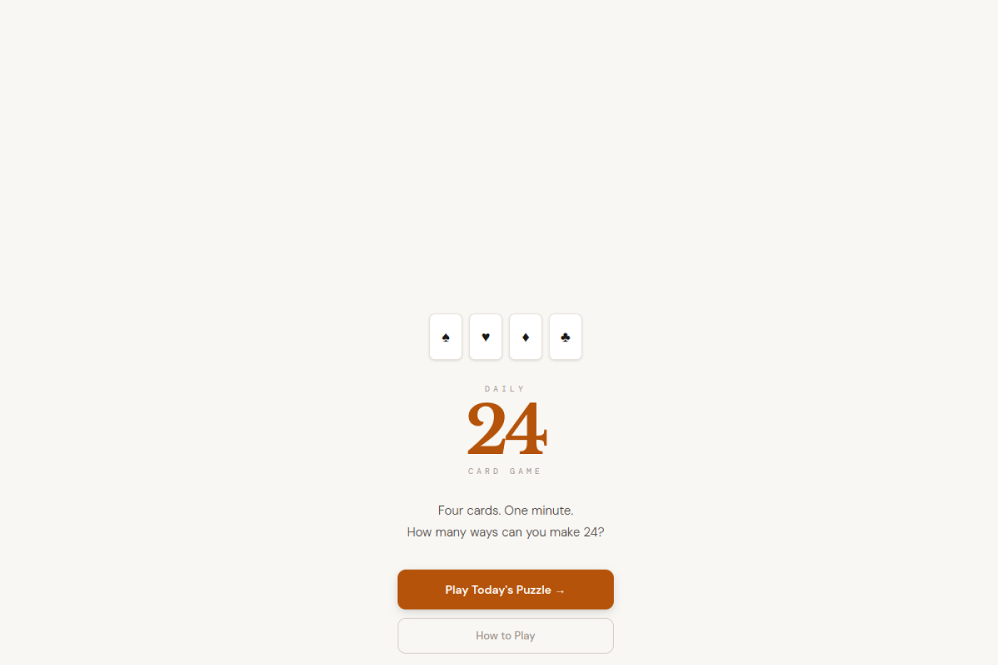 Growing up, my brother Nathan and I had a ritual — grab a deck of cards, deal four, and race to make 24. No timer, no rules, just the two of us at the kitchen table seeing who could find the answer first. It's deceptively fast and more satisfying than it has any right to be. I wanted to build a daily version of that: the same four cards for everyone, everywhere, all at once. The engineering challenge turned out to be less about the game and more about making the math fair — figuring out that (5+8+9)+2 and (2+9)+(5+8) are the same solution, and that a lot of solvers get that wrong.